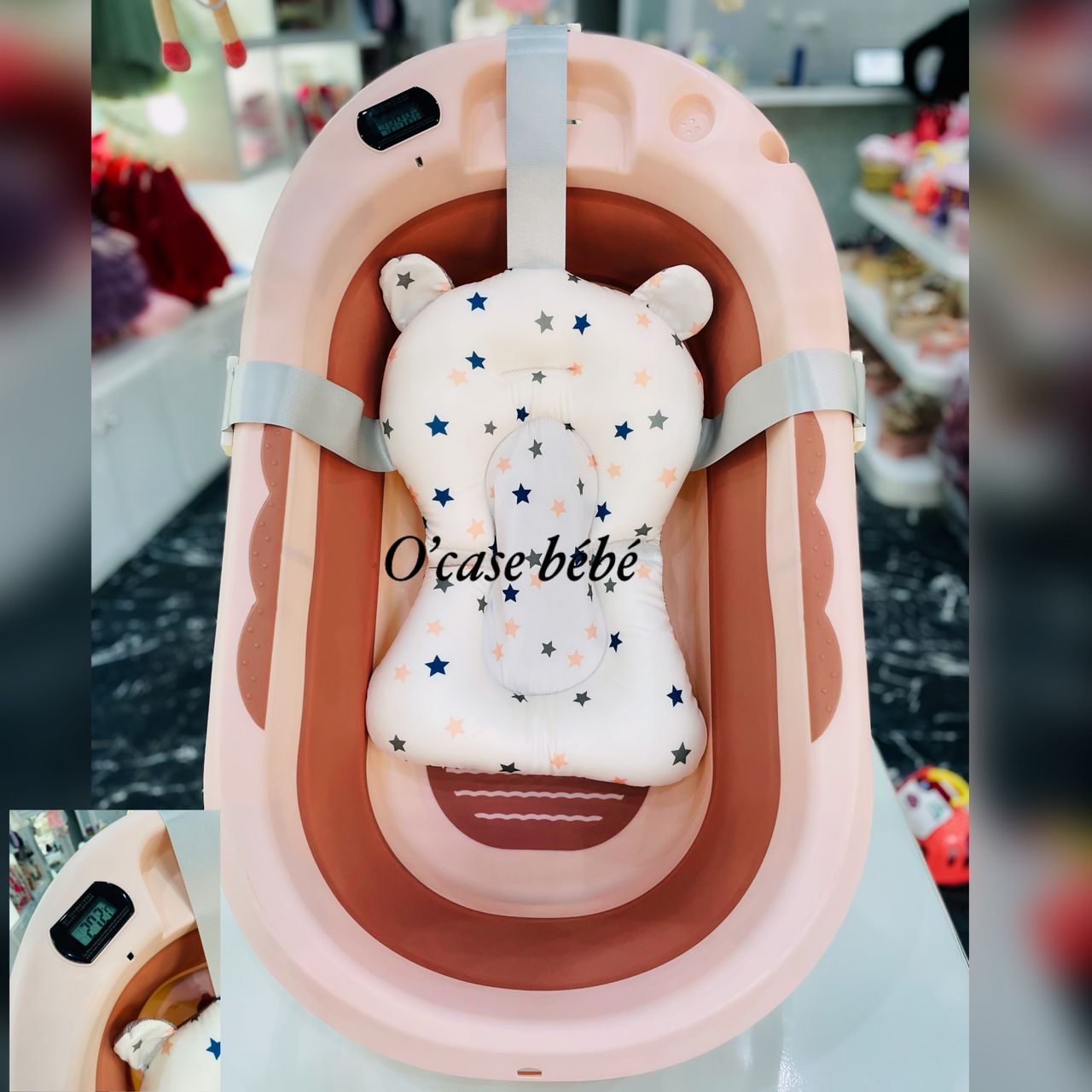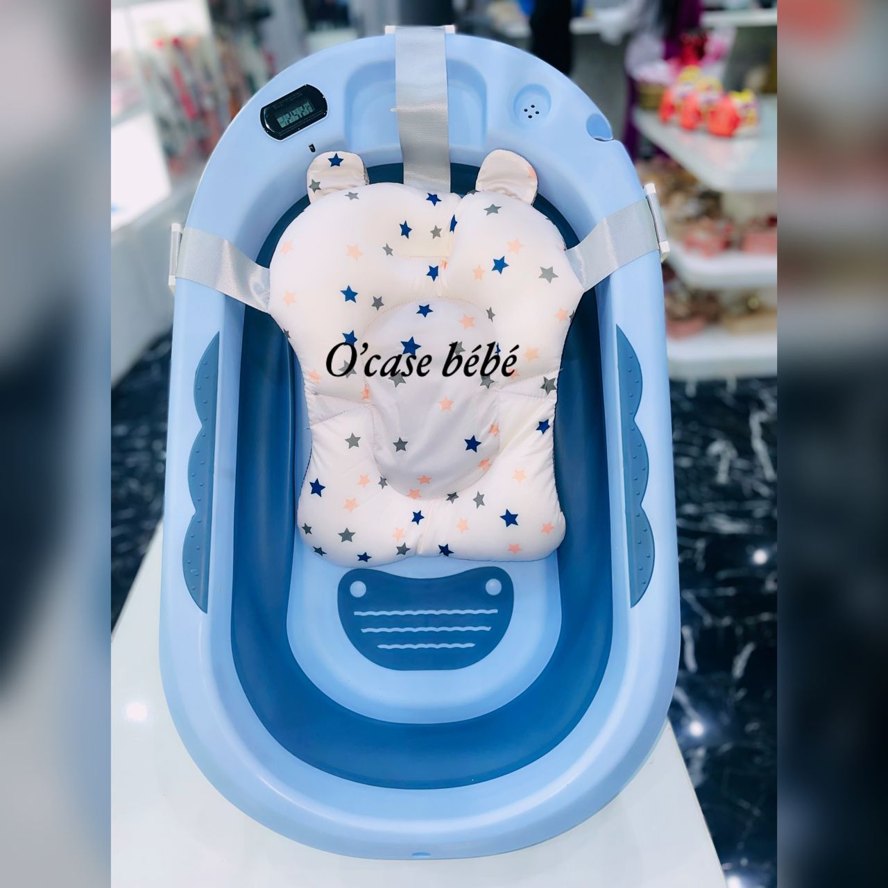 Cette bassine se replie facilement pour un rangement discret, même dans les petits espaces. Elle est équipée d’un support intégré et d’un coussin doux qui maintiennent bébé confortablement pendant le bain.