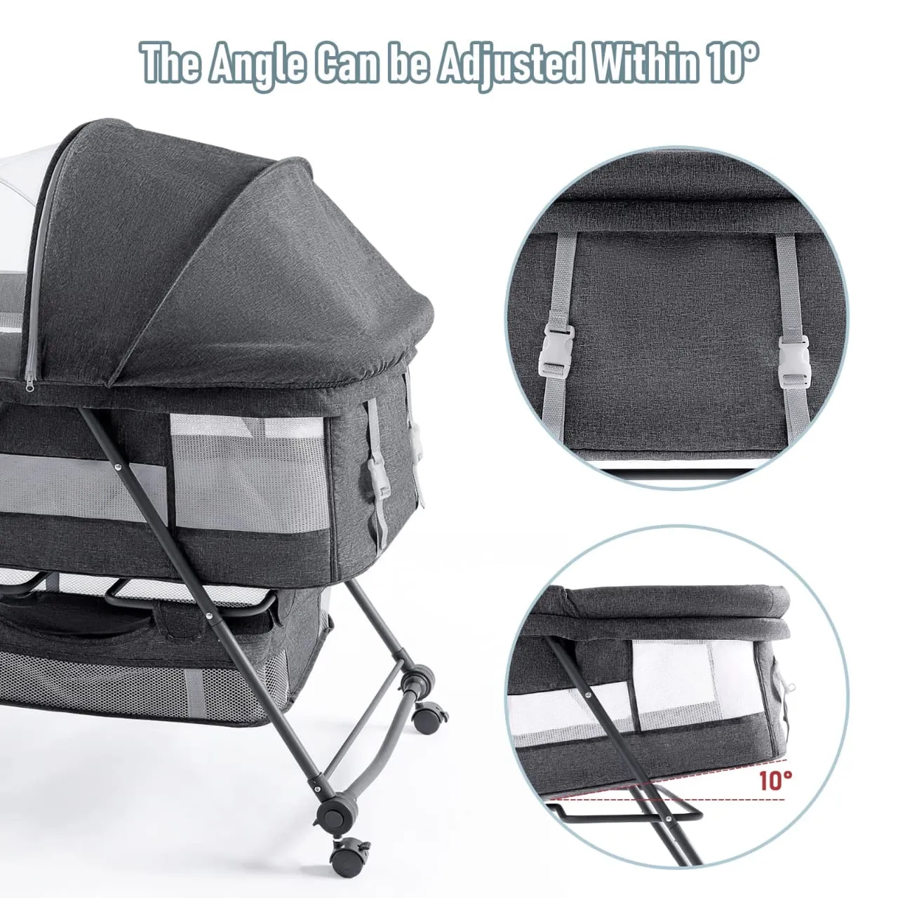 - Paroi latérale amovible : Système d’ouverture facile pour accéder à bébé en un geste.