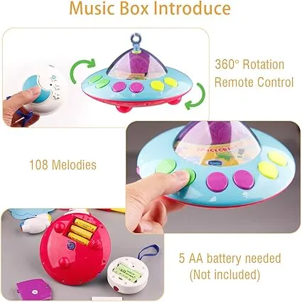 Le mobile musical et veilleuse pour bébé est l’accessoire indispensable pour transformer le rituel du coucher en un moment de pure sérénité. Conçu pour captiver l’attention de votre enfant, il arbore des couleurs vives et des éléments suspendus féeriques en forme de nuages, d’étoiles et de planètes qui stimulent la curiosité et l’éveil visuel dès les premiers mois.